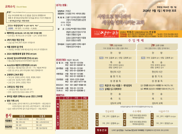 2024년 9월 1일 주보 (가야예배당) 페이지 정보 작성자 관리지기 작성일24-08-31 13:49 조회2,425회 댓글0건 관련링크 목록 본문 2024년 9월 1일 주보 (가야예배당) 댓글목록 등록된 댓글이 없습니다. 목록