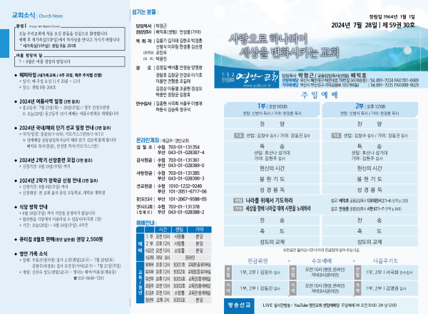 2024년 7월 28일 주보 (센텀예배당) 페이지 정보 작성자 관리지기 작성일24-07-27 10:32 조회2,302회 댓글0건 관련링크 목록 본문 2024년 7월 28일 주보 (센텀예배당) 댓글목록 등록된 댓글이 없습니다. 목록