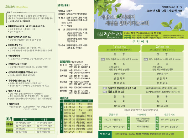 2024년 5월 12일 주보 (가야예배당) 페이지 정보 작성자 관리지기 작성일24-05-11 11:09 조회2,826회 댓글0건 관련링크 목록 본문 2024년 5월 12일 주보 (가야예배당) 댓글목록 등록된 댓글이 없습니다. 목록