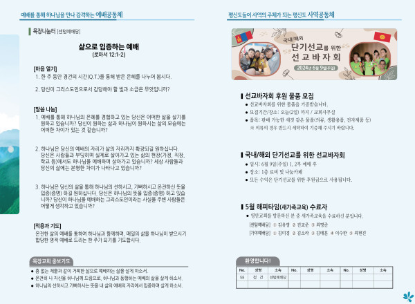 2024년 6월 2일 주보 (센텀예배당) 페이지 정보 작성자 관리지기 작성일24-06-01 10:40 조회2,576회 댓글0건 관련링크 목록 본문 2024년 6월 2일 주보 (센텀예배당) 댓글목록 등록된 댓글이 없습니다. 목록