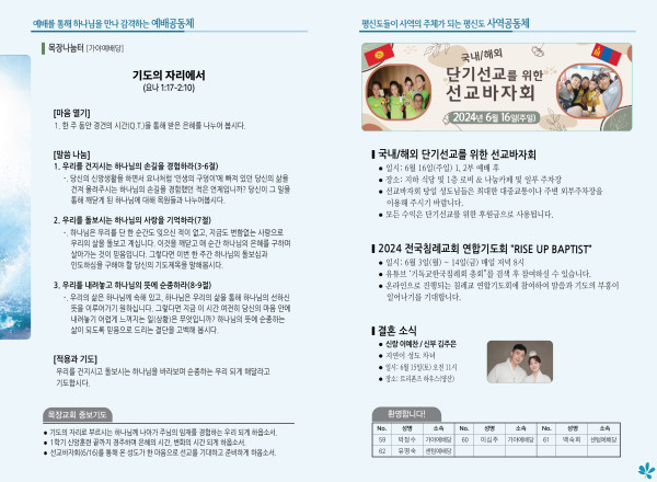 2024년 6월 9일 주보 (가야예배당) 페이지 정보 작성자 관리지기 작성일24-06-08 11:27 조회2,909회 댓글0건 관련링크 목록 본문 2024년 6월 9일 주보 (가야예배당) 댓글목록 등록된 댓글이 없습니다. 목록